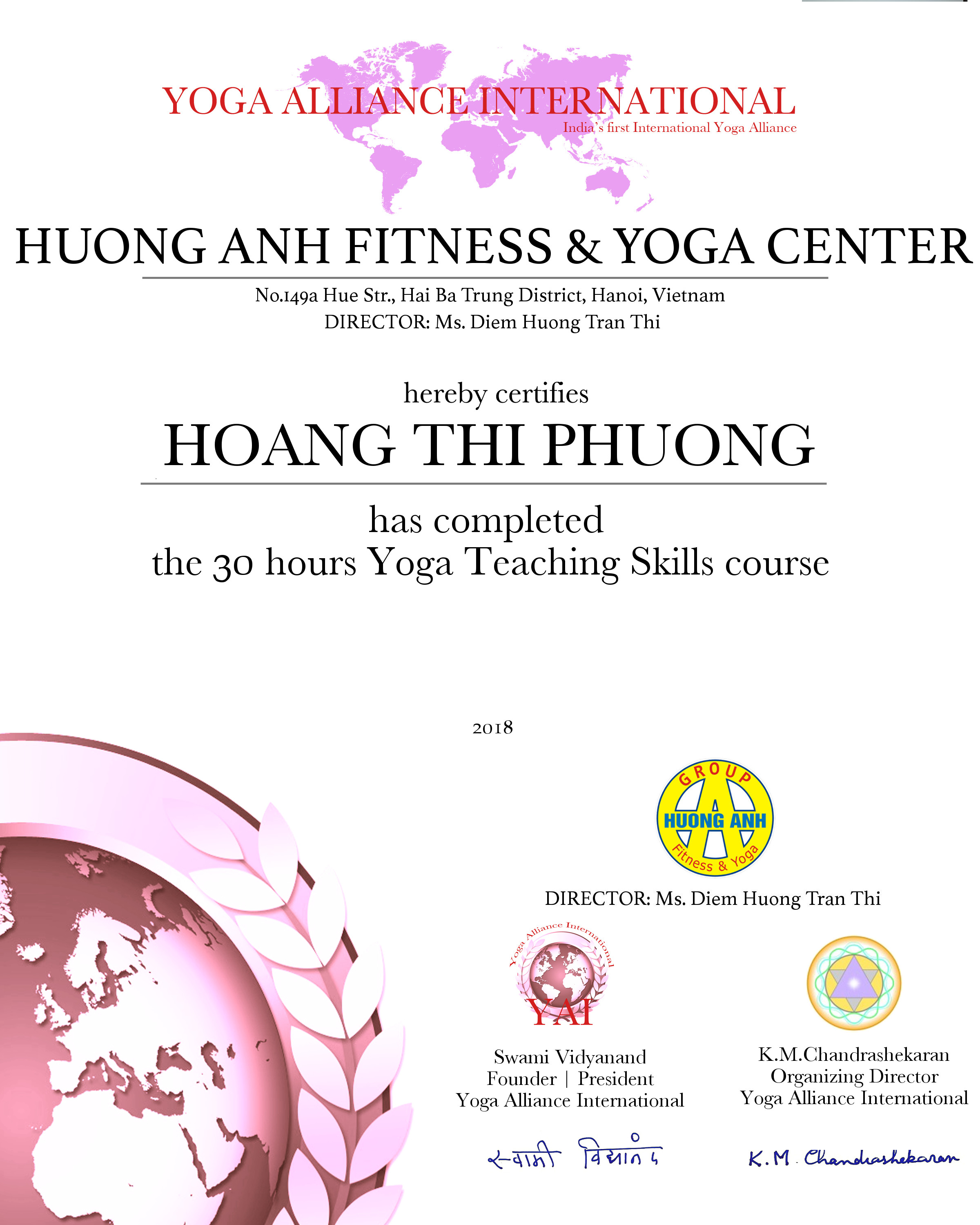 Yoga Teachers in HUONG ANH FITNESS & YOGA CENTER, Hanoi, Vietnam